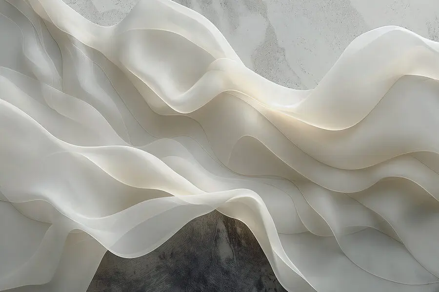 Перетворіть будь-який простір за допомогою цього чарівного полотна з ніжною грою хвилястих складок у м'якому білому кольорі. Це наче зафіксувати мить, коли вітерець танцює в ніжній тканині, привносячи у вашу кімнату безтурботну атмосферу. Уявіть, як ви заходите у вітальню і відчуваєте миттєву розслабленість, коли ці плавні лінії шепочуть про елегантність і спокій. Ідеально підходить для сучасного дивану або затишного куточка для читання, цей витвір швидко стане темою для розмови. Хто б міг подумати, що настінний живопис може бути таким привабливим? Принесіть додому дотик мистецтва, що нагадує теплі обійми для ваших стін.