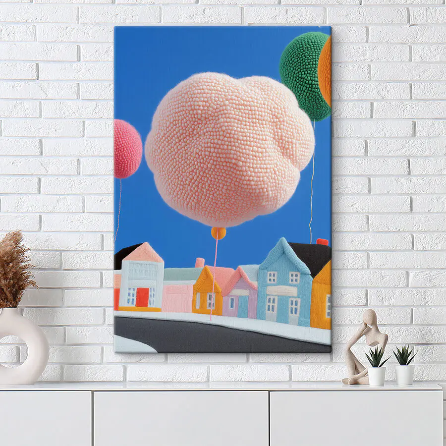 614.93 грн338.21 грнКартина Картина міста на пляжі з човнами та квітами