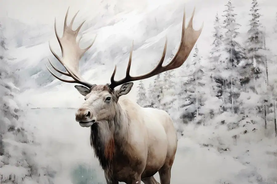 Картина Лось з великими рогами стоїть у засніженому лісі