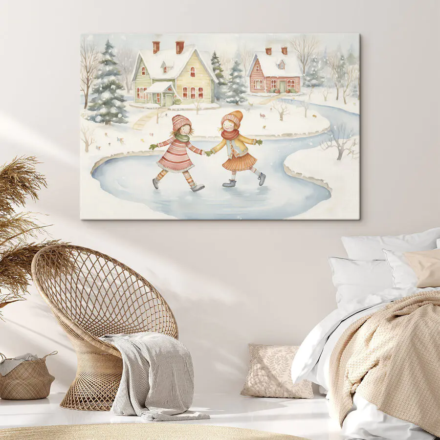 Картина Пара дівчат катається на ковзанах на тлі засніженого пейзажу