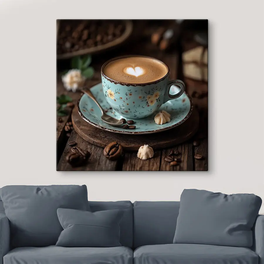 614.93 грн338.21 грнКартина Чашка кави з лате-артом на тарілці з фруктами та пластівцями