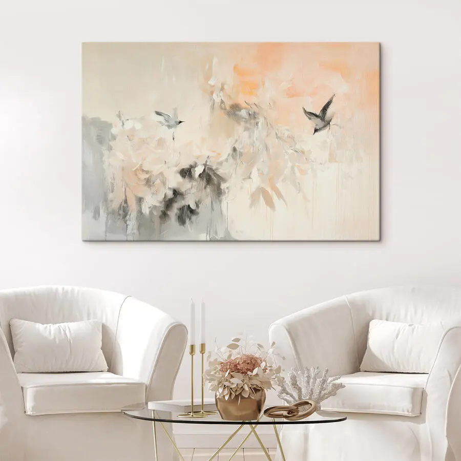 Перетворіть свій простір за допомогою цього мрійливого принта на полотні "Картина з птахами, що летять у небі". Уявіть ніжний тріпотіння птахів, що злітають високо, приносячи відчуття свободи прямо у ваш дім. М'які відтінки та делікатні мазки фіксують момент, який одночасно заспокоює та піднімає настрій - ідеальний для тих днів, коли вам просто потрібно трохи спокою. Повісьте її у вітальні або спальні і побачите, як вона стане приводом для розмов. Неначе мистецтво природи ділиться з вами своєю історією. Крім того, це чудове нагадування про те, що навіть коли життя стає трохи хаотичним, над нами є краса. Хто б міг подумати, що витвір мистецтва може шепотіти такі теплі думки? Використовуйте його для натхнення в затишні моменти роздумів або просто для милування за ранковою кавою.