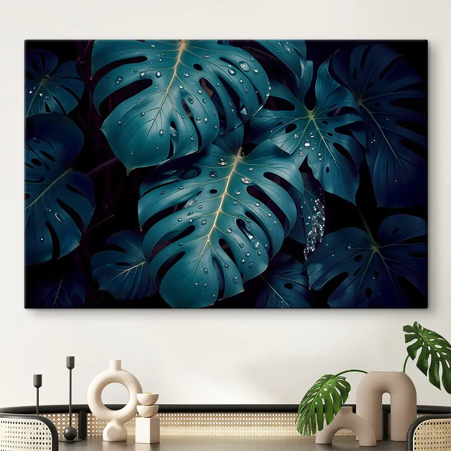 Занурте свій простір в освіжаючу атмосферу картини "Пишне листя, прикрашене ніжними краплинами". Цей принт на полотні зображає мить у тихому тропічному лісі. Уявіть, як ви відчуваєте прохолоду природи, де кожен листочок, здається, шепоче таємниці дикої природи - ідеальний варіант для привнесення нотки безтурботності в приміщення. Глибока зелень і грайливі краплинки викликають трохи радості, майже як міні-джунглі прямо на вашій стіні. Це не просто декор, це запрошення помріяти про тропічні країни, ліниві вечори та підбадьорливий аромат свіжого дощу. Маленький шматочок, який робить велику заяву!