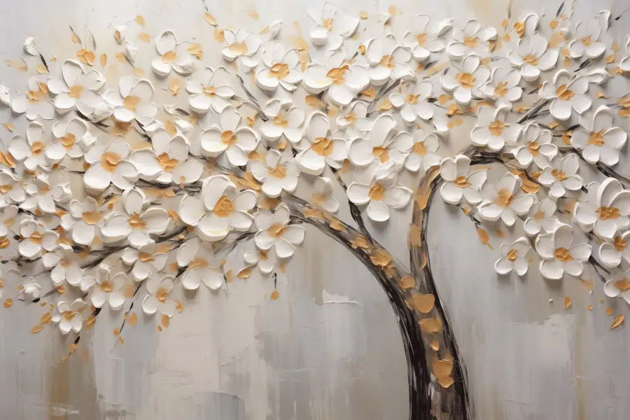 Картина Малюнок дерева з білими квітами
