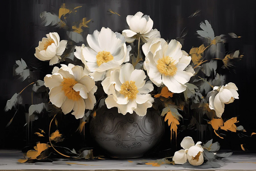 Картина Малювання білих квітів у вазі