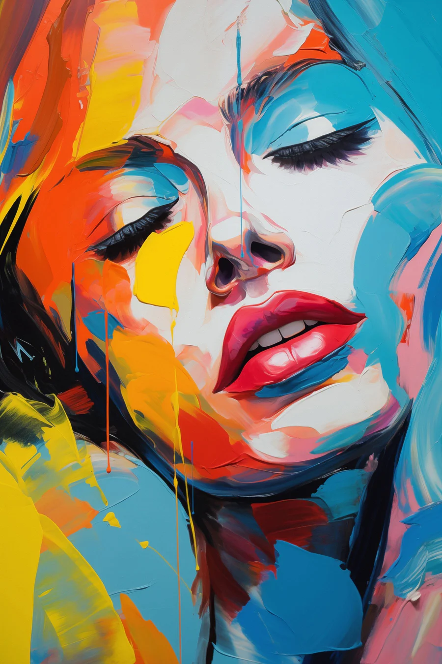Прикрасьте кімнату цим приголомшливим принтом на полотні! На ньому зображено жінку, прикрашену яскравими бризками фарби, що передають сміливий мистецький дух. Уявіть, що він висить у затишному куточку, а кольори просто виблискують і спонукають до творчості. Кожен погляд на картину може зародити нову ідею або просто підняти настрій. Прекрасне поєднання відтінків розповідає історію - можливо, про безтурботний день, сповнений сміху та веселощів, наповнених фарбами. Ідеально підходить для тих, хто любить унікальний декор, який здається живим. Це наче свято прямо на вашій стіні, що нагадує всім про те, що потрібно відкрити свій барвистий бік!