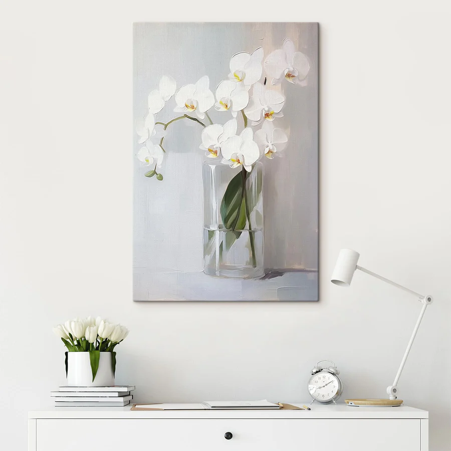 Картина Картина білої орхідеї в скляній вазі