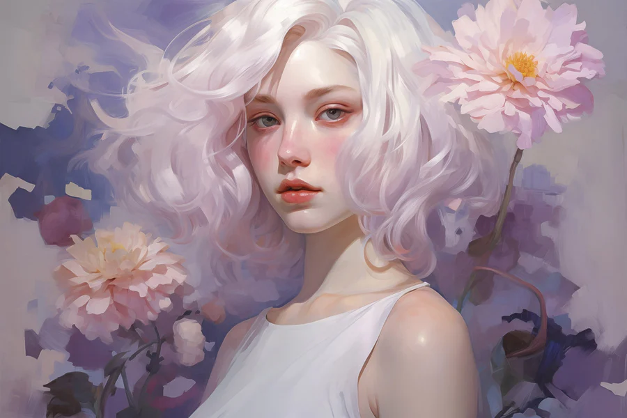 Картина Жінка з рожевим волоссям і рожевими квітами