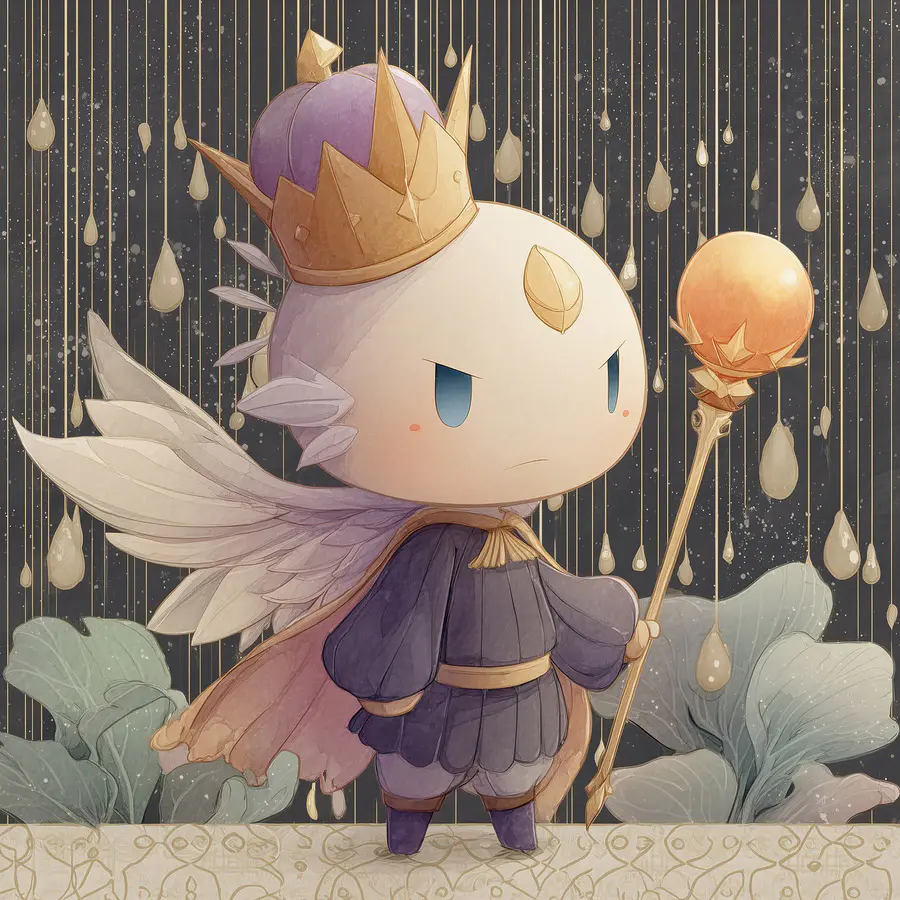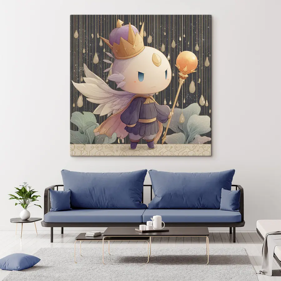 Картина Карикатура на маленького ангела з крилами та короною, який тримає посох